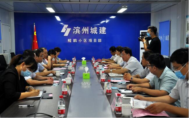 公司黨委書記、董事長曹慶訓代表公司對趙文海書記一行的到來表示熱烈歡迎。在鯤鵬安置小區項目部會議室,曹慶訓向趙文海書記介紹了公司的生產經營情況及下一步的工作目標,觀看了企業宣傳片。隨后,曹慶訓就工程創優及對國有建筑企業扶持力度方面與調研組做了交流。