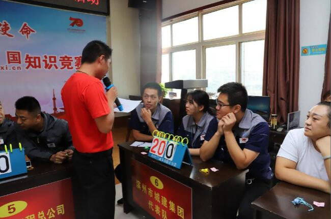 9月24日上午,濱州城建集團參加了北鎮辦事處交運社區舉辦的“不忘初心、牢記使命”慶祝新中國成立70周年學習強國知識競賽。此次知識競賽有8支代表隊參加,在競賽中,參賽選手們聚精會神地聽題、信心百倍地答題,分工協作、沉著冷靜,認真回答主持人的提問,既體現出個人魅力,又展現出了集體風采。經過激烈的個人賽、團體賽、必答題、搶答題環節,最終濱州城建集團高路雨、任月月、陳延杰三名選手憑借良好的政治素質和精神風貌大比分勝出,獲得此次比賽的一等獎。