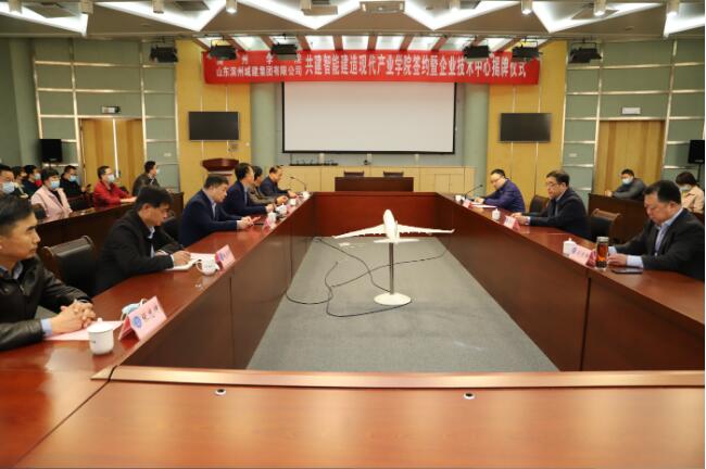 曹慶訓(xùn)與李長海共同為“智能建造現(xiàn)代產(chǎn)業(yè)學(xué)院”、“山東濱州城建集團(tuán)有限公司企業(yè)技術(shù)中心”揭牌。